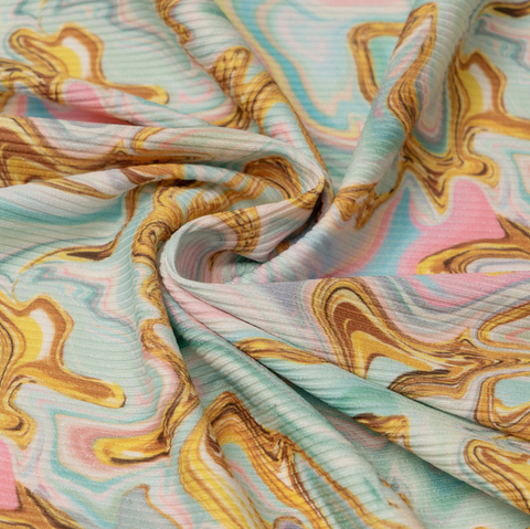 リブニット生地はカスタムデザインのデジタル印刷を受け入れます95ポリエステル5スパンデックスカスタムリブセーターニット生地